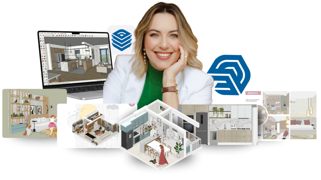 Criadora da metodologia do Projeto Expert, ministra treinamentos de modelagem e detalhamentos de projeto de arquitetura de interiores, utilizando software 3D do SketchUp + Layout, além de mentorias personalizadas.